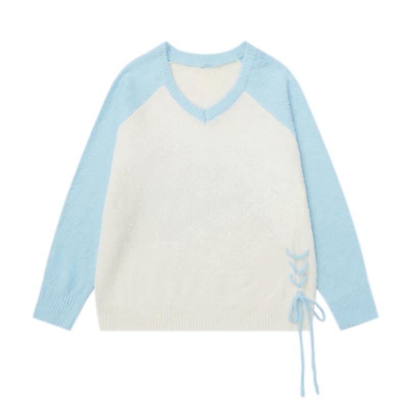 Loose-Fitting Blue&Apricot Patchwork Sweater