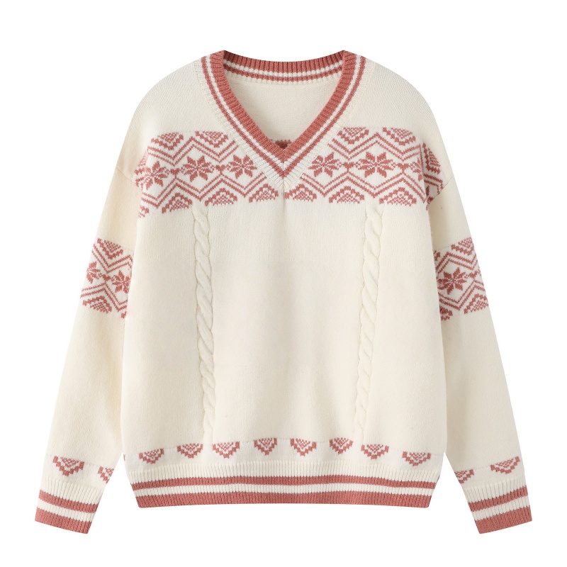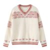 V-Neck Loose-Fitting Patterned Sweater