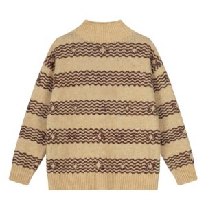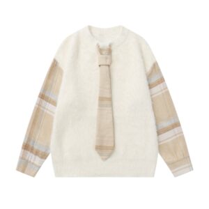Loose-Fitting Blue&Apricot Patchwork Sweater